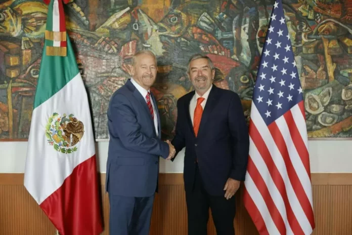 El canciller Juan Ramón de la Fuente sostuvo su primera reunión con el recién llegado embajador de Estados en México, Ron Johnson.