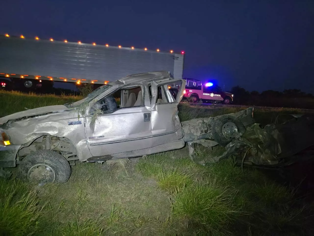 A un costado de la cinta asfáltica también fue localizada una camioneta Ford F-250, aparentemente involucrada en el siniestro.