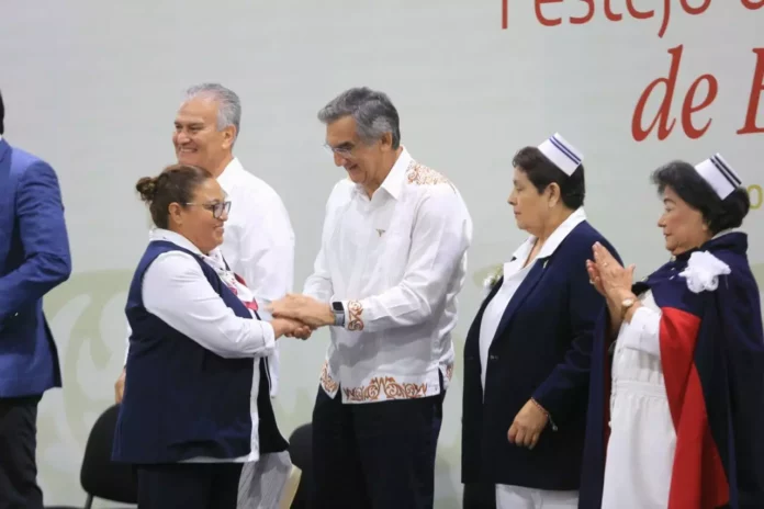 En la ceremonia, el gobernador entregó 37 reconocimientos a personal de todo el estado, incluyendo a la doctora Margarita Ortega Padrón, directora de la Escuela de Enfermería ‘Doctor José Ángel Cadena y Cadena’, de Reynosa, por su trayectoria de 50 años de servicio.