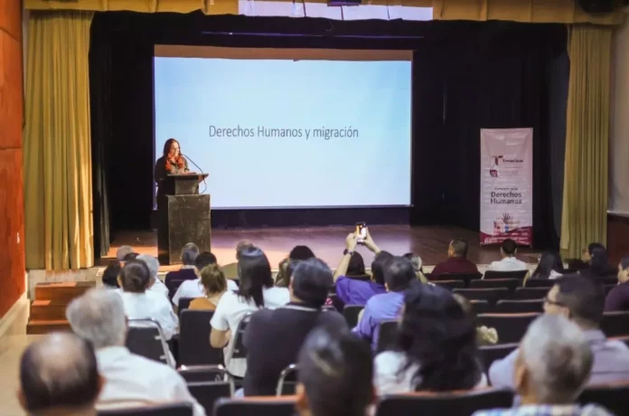 Ciudad Victoria, Tamaulipas.-Como parte de la política migratoria humanista del gobernador Américo Villarreal Anaya, la Secretaría de Bienestar Social organizó la conferencia “Derechos Humanos de los Migrantes y Personas en Contexto de Movilidad Humana”, dirigido a personas servidoras públicas del Estado, en el Auditorio “Consuelo Cantú Leal” de la Casa del Arte en esta Capital.