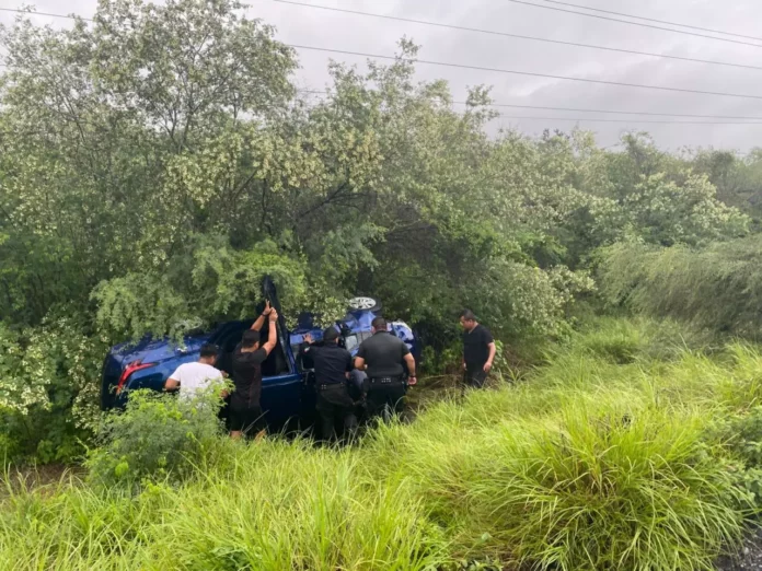 El incidente ocurrió cuando un vehículo azul salió de la cinta asfáltica y terminó volcado entre la maleza.