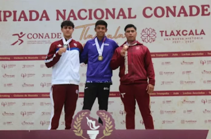 Apizaco, Tlaxcala.- El atleta tamaulipeco Jesús Rolando Padilla Vidales obtuvo la medalla de bronce en la prueba de lanzamiento de disco dentro de la categoría Sub-20, en las competencias de atletismo de la Olimpiada Nacional 2025, celebradas en el estado de Tlaxcala.