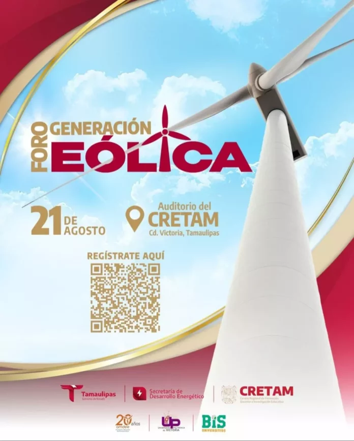 Ciudad Victoria, Tamaulipas.- Con el fin de generar un nodo de conexión para compartir avances, ideas y mejoras en las energías renovables, la Secretaría de Desarrollo Energético anunció el próximo Foro “Generación de Energía Eólica” en la capital del estado.