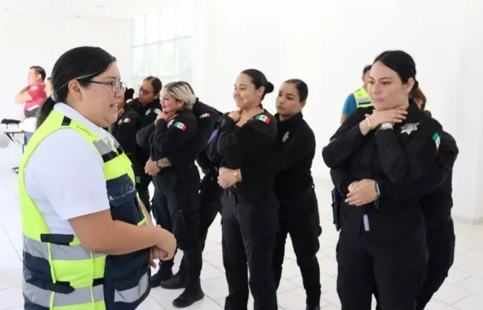 Con una duración de cinco horas, esta capacitación dirigida a 25 elementos de la Guardia Estatal de Género y personal administrativo de esta delegación tiene el objetivo de que las y los participantes conozcan las técnicas adecuadas de reanimación cardiopulmonar (RCP), desobstrucción de la vía aérea, atención a heridas, quemaduras y hemorragias.