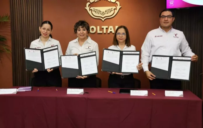 Ciudad Victoria, Tamaulipas. – Con el objetivo de fortalecer el desarrollo de formación continua y la investigación en materia de género y generar información que contribuya a la elaboración de políticas públicas más efectivas, el Instituto de las Mujeres en Tamaulipas (IMT) y el Colegio de Tamaulipas (COLTAM) firmaron un convenio de colaboración interinstitucional en las instalaciones del Colegio de Tamaulipas, evento que contó con la presencia de autoridades, entre ellas Silvia Casas, secretaria de Bienestar Social y Sylvia Isabel Martínez, subsecretaria de Planeación de la Secretaría de Educación.