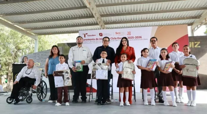 Llera, Tamaulipas.- En representación del gobernador Américo Villarreal Anaya, el secretario de Desarrollo Energético de Tamaulipas, Walter Julián Ángel Jiménez, y el subsecretario de Inversión, Proyectos Estratégicos y Desarrollo Sostenible, Óscar Xitec Pérez Contreras, inauguraron el ciclo escolar 2025-2026 en Llera y Díaz Ordaz, respectivamente.