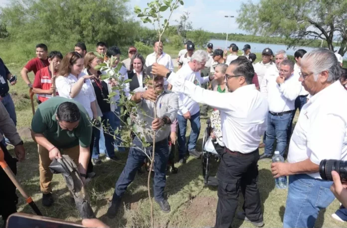 Reynosa, Tamaulipas.- Con la unión de voluntades entre los tres órdenes de gobierno, sociedad civil, instituciones educativas y legisladores locales, se llevó a cabo una jornada de reforestación en la Laguna La Escondida, un espacio emblemático de Reynosa que poco a poco recupera su esplendor.