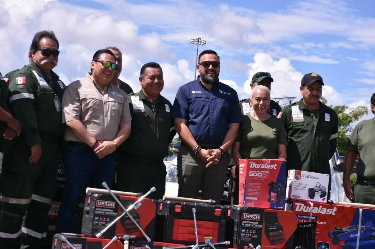Entre el equipo entregado se encuentran cajas de herramientas, crucetas, martillos, cinceles, cables pasa corriente, gatos hidráulicos, compresores, cargadores de baterías, llantas y apoyo en mantenimiento preventivo de las unidades vehiculares que forman parte de este servicio, entre otras más.
