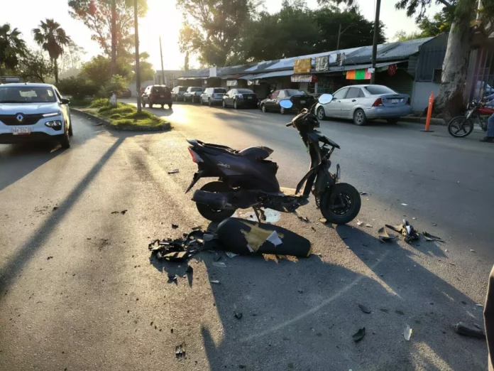 Al llegar a un retorno que se ubica frente al Seguro Social, el conductor del automóvil, que circulaba por el carril derecho o de baja velocidad, dio vuelta hacia su izquierda y le cerró el paso a la motoneta registrándose el accidente.
