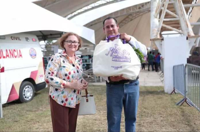 San Fernando, Tamaulipas.– Para respaldar a familias en situación de vulnerabilidad y fortalecer el consumo local, el Sistema para el Desarrollo Integral de la Familia de Tamaulipas, presidido por la doctora María de Villarreal, llevó hasta este municipio la Feria de Alimentos “Come bien, Vive bien”, que reunió a pobladores de la cabecera municipal y comunidades aledañas.