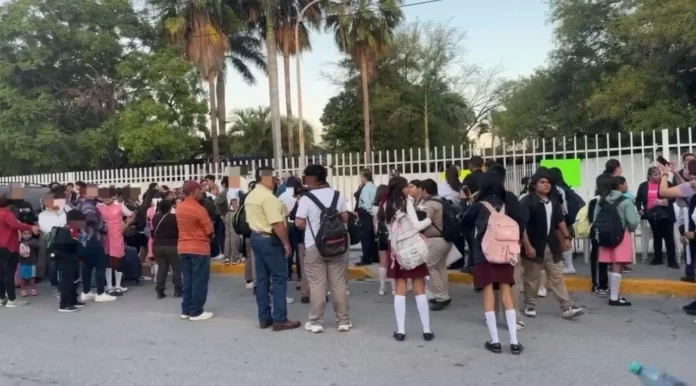 Reunidos afuera de la escuela, los padres y madres de familia recabaron firmas para entregarlas a la Secretaría de Educación de Tamaulipas.