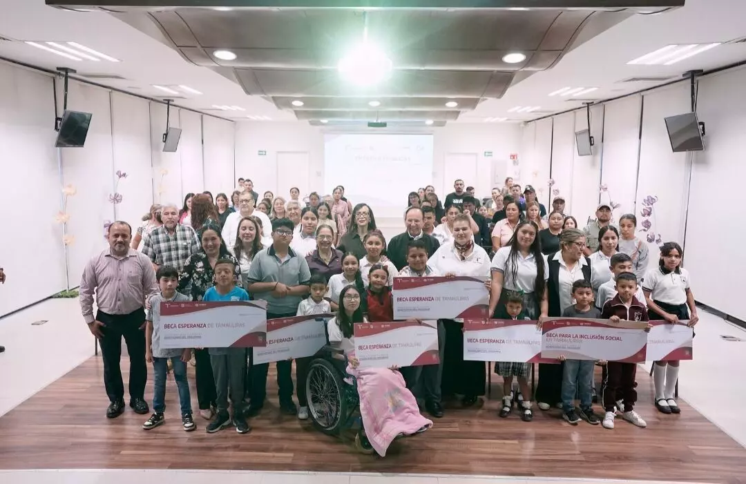 Ciudad Victoria, Tamaulipas.– Con el compromiso de garantizar el acceso y permanencia en el sistema educativo estatal, el DIF Tamaulipas, que preside la doctora María de Villarreal, entregó las becas “Esperanza de Tamaulipas” y “Para la Inclusión Social en Tamaulipas”, dirigidas a niñas, niños y jóvenes de atención prioritaria.