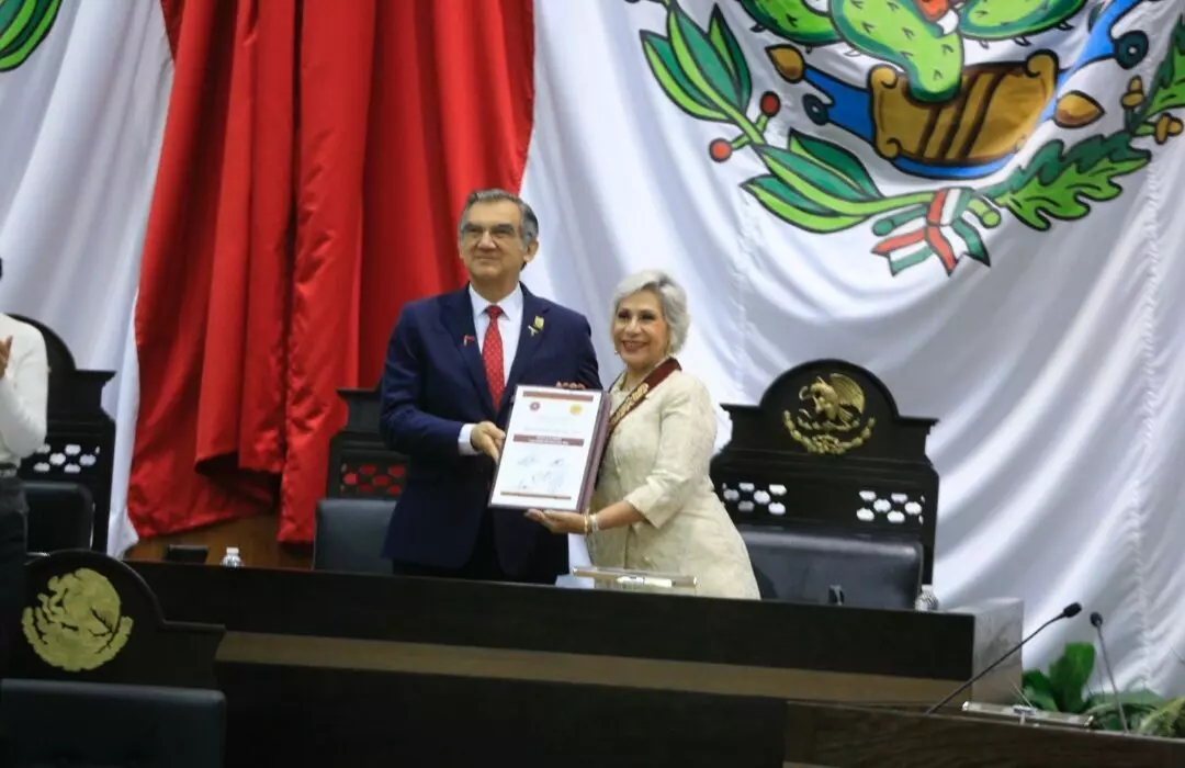“Nos sentimos muy orgullosos de usted, de su obra, de su ejemplo, de su determinación para brillar y de llevar con usted a cada escenario, a cada aula, a cada recinto cultural, a cada estreno, la identidad y el orgullo de ser tamaulipeco”, expresó el gobernador en la ceremonia celebrada en la sede del Congreso Local.