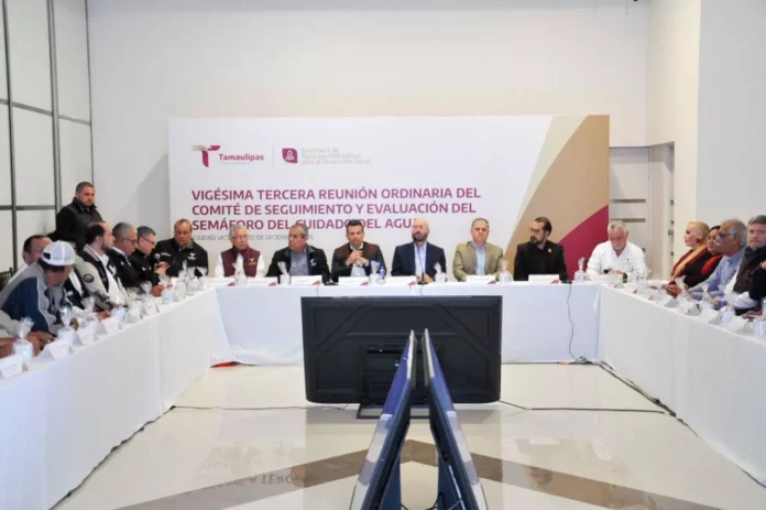 Ciudad Victoria, Tamaulipas.– La Secretaría de Recursos Hidráulicos para el Desarrollo Social dio a conocer la actualización del Semáforo del Cuidado del Agua en Tamaulipas, resultado de la Tercera Vigésima Reunión Ordinaria del Comité de Seguimiento y Evaluación, encabezada por el secretario Raúl Quiroga Álvarez y el presidente municipal de Ciudad Victoria, Eduardo Gattás Báez.