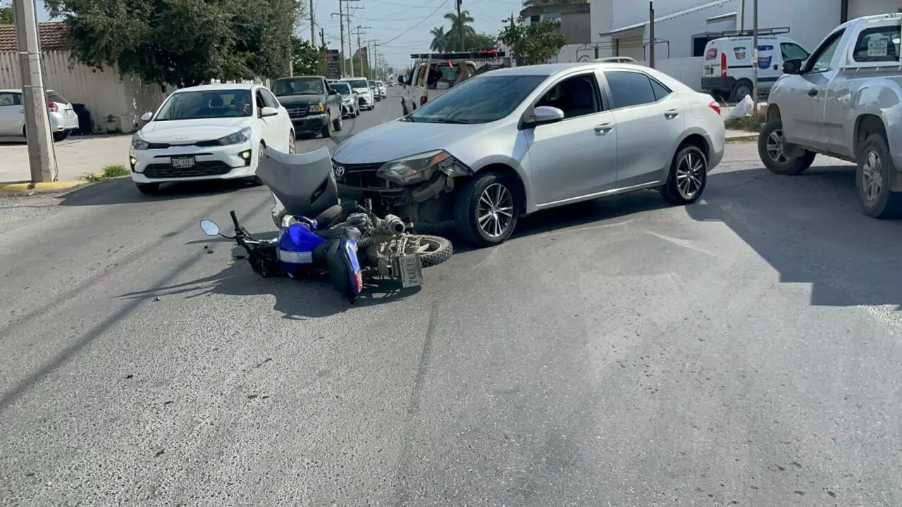 Al llegar al crucero con la Avenida del Valle la mujer excedió el límite de alto y se impactó contra el motociclista, que circulaba de poniente a oriente.