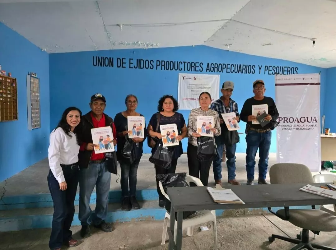 Ciudad Victoria, Tamaulipas.- Personal de la Secretaría Anticorrupción y Buen Gobierno, realiza a través de Contraloría Social, capacitaciones al Comité de Contraloría Social del Programa de Agua Potable, Drenaje y Tratamiento (PROAGUA) en distintas sedes de Tamaulipas, entre ellas el Salón Ejidal Buena Vista en Villa de Casas, el ejido Santa Fe en González y el ejido Alfredo V. Bonfil en San Fernando.