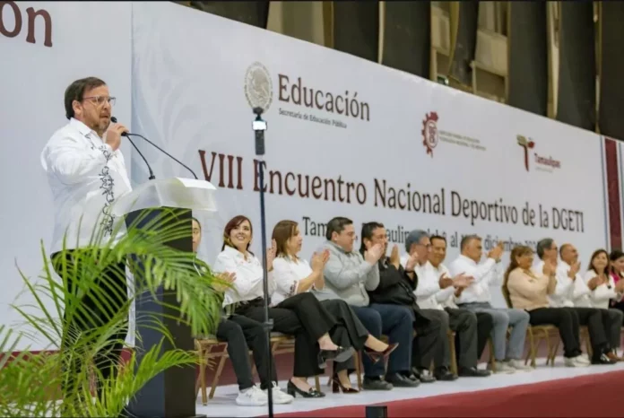 Tampico, Tamaulipas.– Con la participación de más de tres mil estudiantes de los 32 estados de la República, Miguel Ángel Valdez García, secretario de Educación de Tamaulipas, en representación del gobernador Américo Villarreal Anaya, inauguró el VIII Encuentro Nacional Deportivo DGETI 2025.