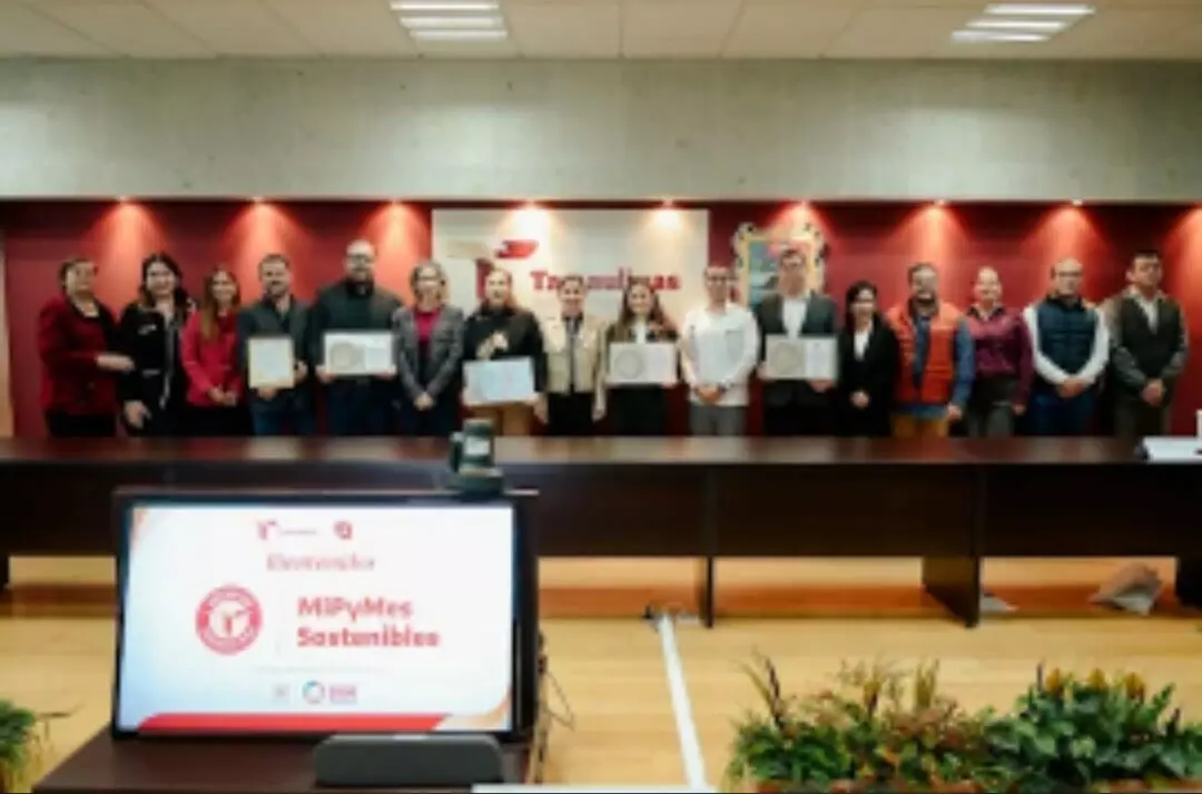 Durante el encuentro junto al presidente de Canaco Victoria, Federico González y la subsecretaria para la Pequeña y Mediana empresa Mariana Álvarez, la titular de la dependencia estatal felicitó a las empresas galardonadas por llevar con dorgullo el nombre de Tamaulipas en el ámbito nacional, destacando que este reconocimiento es resultado de años de trabajo, constancia, innovación y compromiso con su comunidad.