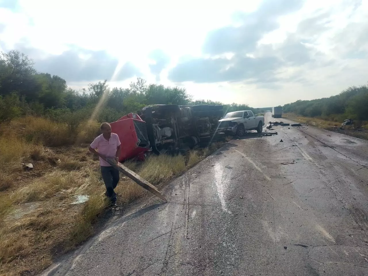 Padilla, Tamaulipas.- Derivado de un accidente vehicular en el kilómetro 53 en la Carretera Federal 101, se encuentra parcialmente suspendida la circulación en un carril, obstruido por un camión volteado.