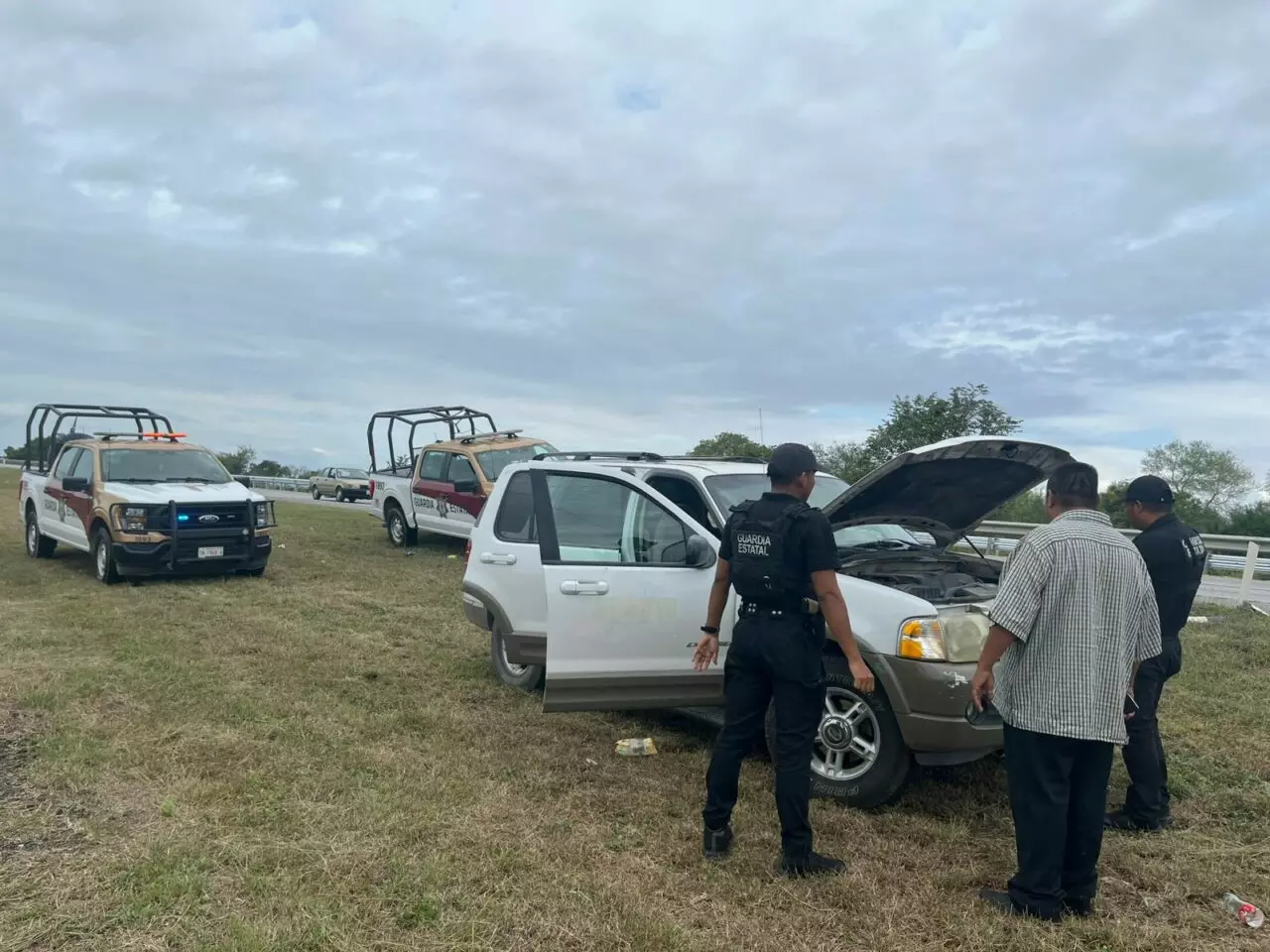 Durante recorridos de seguridad y vigilancia detectaron un vehículo Ford Explorer, color blanco, con placas del estado de Nuevo León, que se encontraba detenido debido a una falla mecánica.
