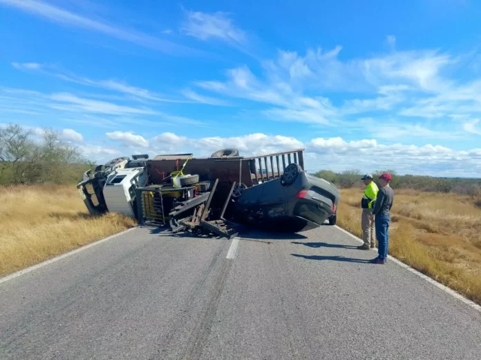 Padilla, Tamaulipas.- La circulación vehicular se encuentra suspendida en la Carretera Federal 101, a la altura del kilómetro 57, tras registrarse un accidente que involucró a un tractocamión y una camioneta.