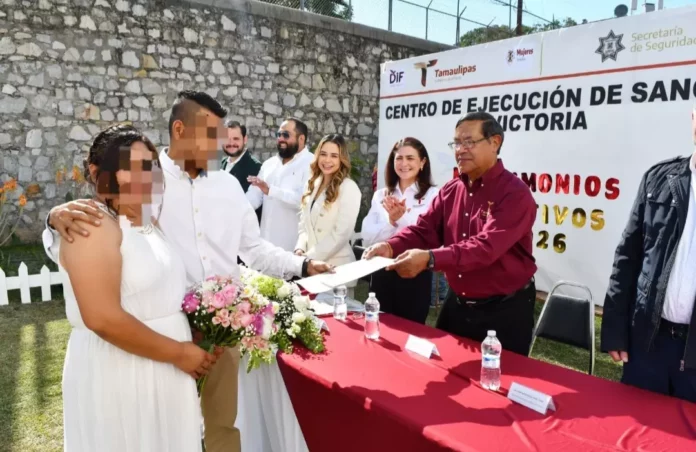 Ciudad Victoria, Tamaulipas.– Con base en el respeto a los derechos de las personas privadas de la libertad (PPLs) y en la estrategia de reinserción social, que tiene a las relaciones familiares entre sus ejes fundamentales, 21 parejas formalizaron su unión al interior del Centro de Ejecución de Sanciones (CEDES) de Ciudad Victoria.