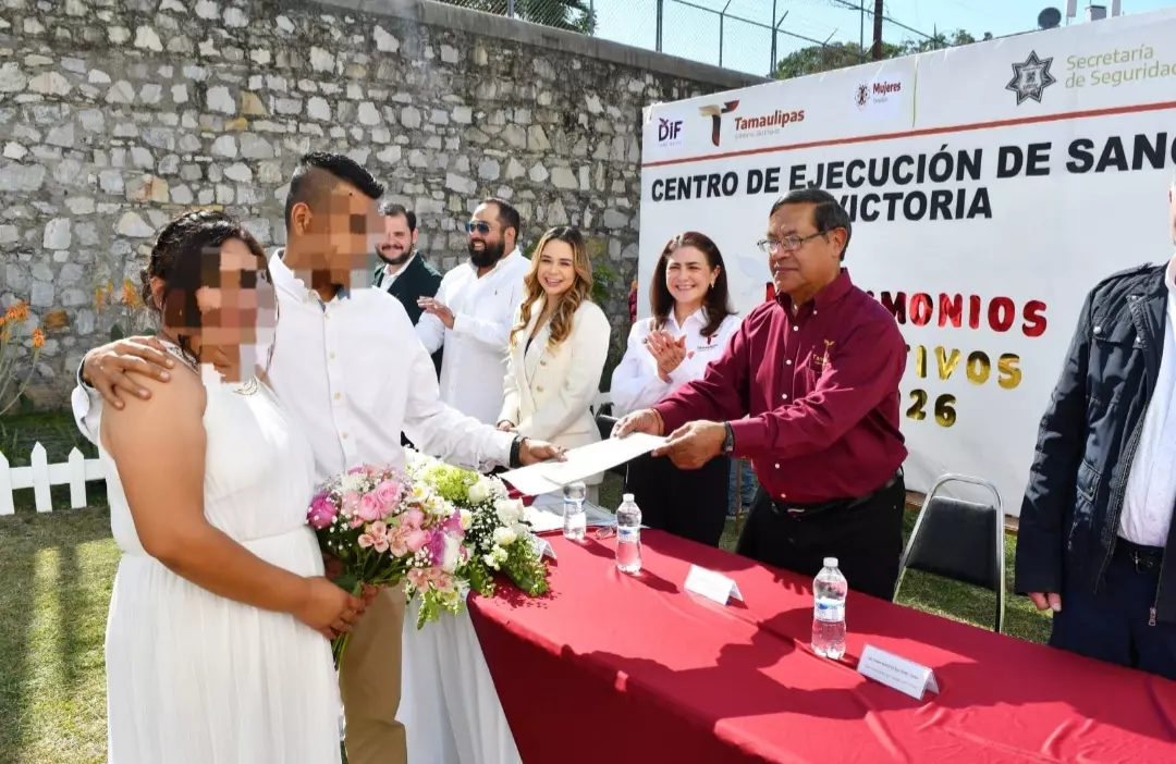 La ceremonia de matrimonios colectivos fue posible gracias a la sinergia entre la Secretaría de Seguridad Pública de Tamaulipas (SSPT), el Sistema DIF Victoria, la Dirección de Oficialías del Registro Civil y el Instituto de las Mujeres en Tamaulipas, y consistió en el enlace legal de 11 parejas integradas por PPLs y 10 entre residentes del CEDES Victoria y personas externas.