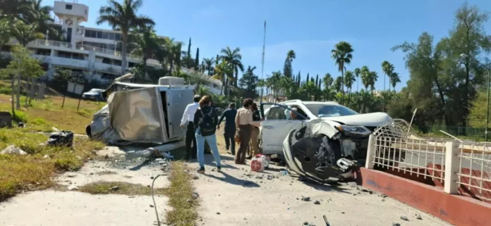 Por su parte la camioneta salió proyectada y se estrelló contra la estructura donde hace algunos años se construyó un túnel para cruzar la calle Juan B. Tijerina.