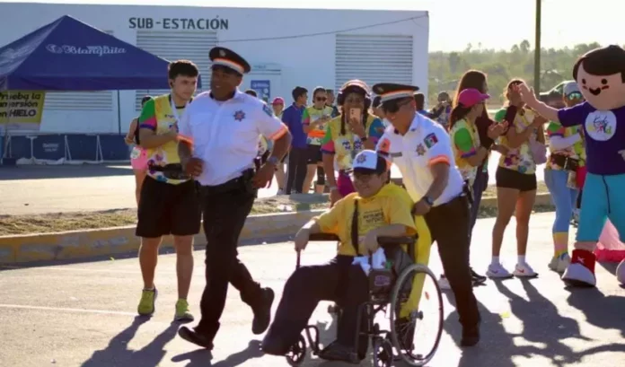 Reynosa, Tamaulipas.- En el marco del Día Internacional contra el Cáncer Infantil, personal de la Guardia Estatal y Dirección de Tránsito Estatal de la Secretaría de Seguridad Pública de Tamaulipas (SSPT) convivieron con familias reynosenses en la carrera “Pequeños Héroes” 2026.