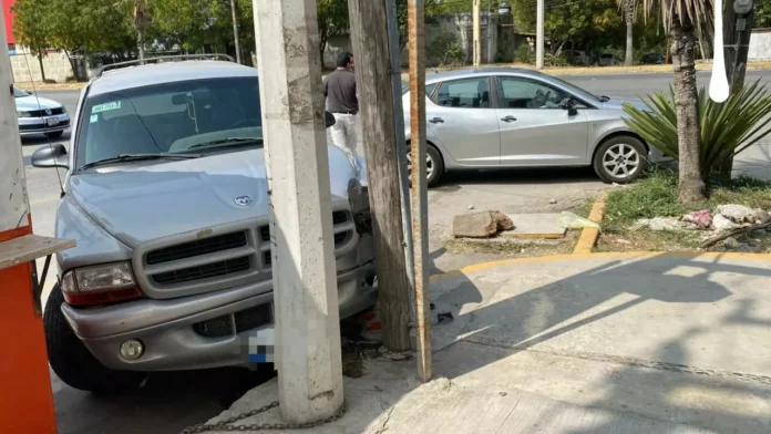 La camioneta Durango, el ser impactado por el costado derecho, salió proyectada y se estrelló contra un poste de madera.