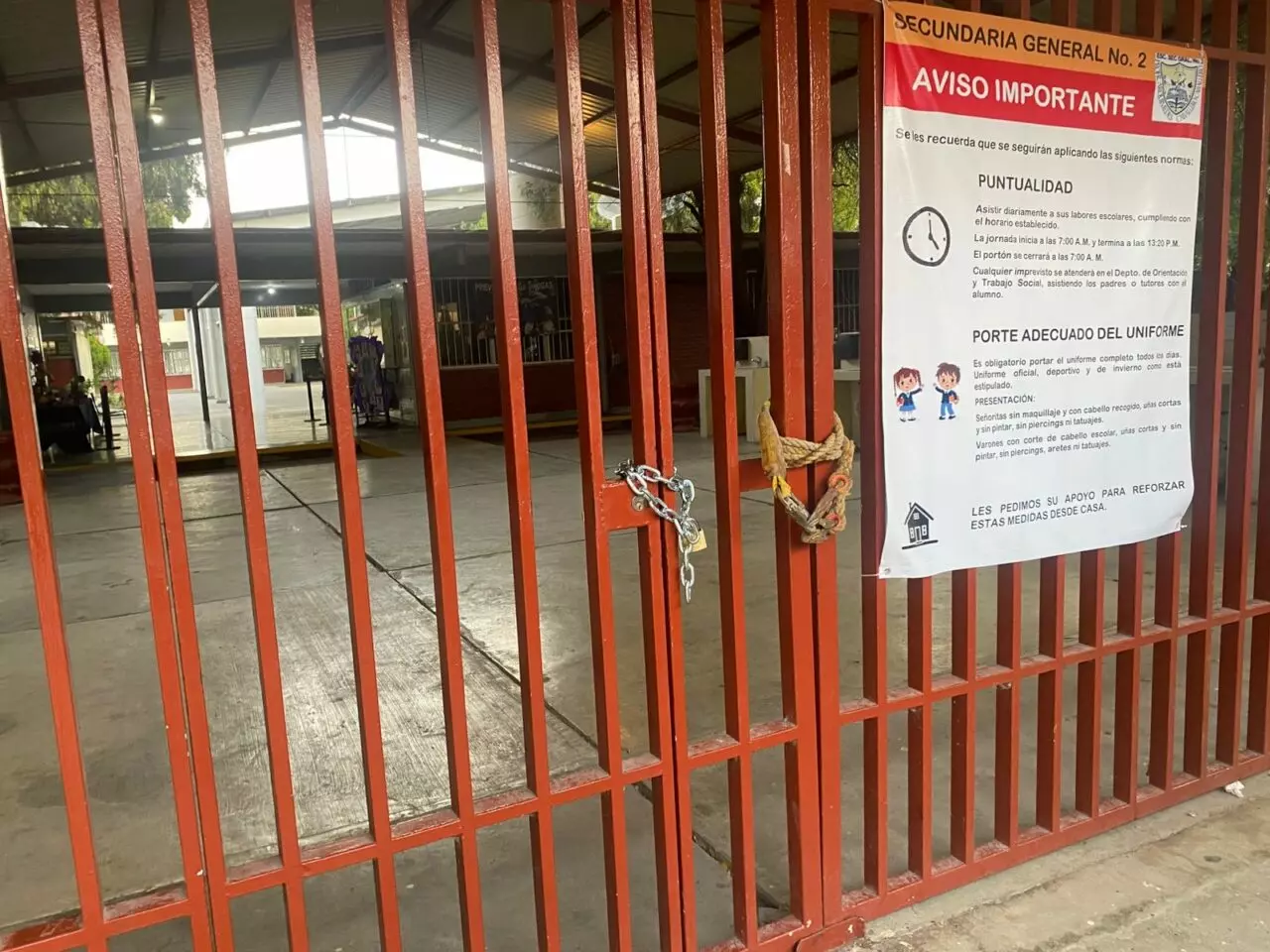 CIUDAD VICTORIA.- Con cadena y candado, padres de familia cerraron esta mañana la Escuela Secundaria General Número Dos Profesor Arquímedes Caballero Caballero.