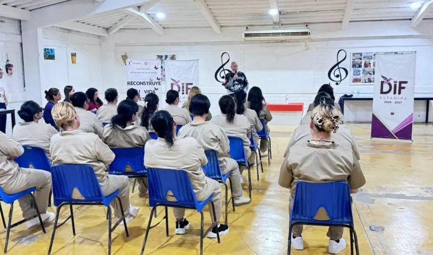 Altamira, Tamaulipas.- Como parte de las actividades conmemorativas del Día Internacional de la Mujer, el Centro de Ejecución de Sanciones (CEDES) del municipio de Altamira recibió a integrantes del voluntariado del Ayuntamiento, quienes impartieron la conferencia “Reconstruye tu vida desde adentro”.