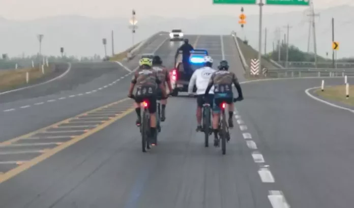 El ciclista cuenta con el acompañamiento permanente de elementos de la Guardia Estatal, quienes brindan seguridad y resguardo durante el recorrido carretero y su participación en eventos municipales, con el objetivo de garantizar que la rodada se realice de manera segura.