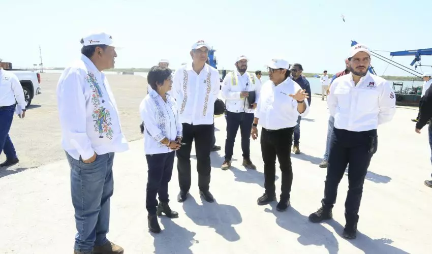 El gobernador y la titular de la Sedatu, junto con el director general de la Comisión Nacional de Vivienda, Rodrigo Chávez Contreras llegaron hasta la zona de las escolleras, donde apreciaron el canal de navegación y conocieron la zona para el desarrollo de la Terminal de Almacenamiento de Pemex, que se convertiría en la más grande e importante del noreste de México.