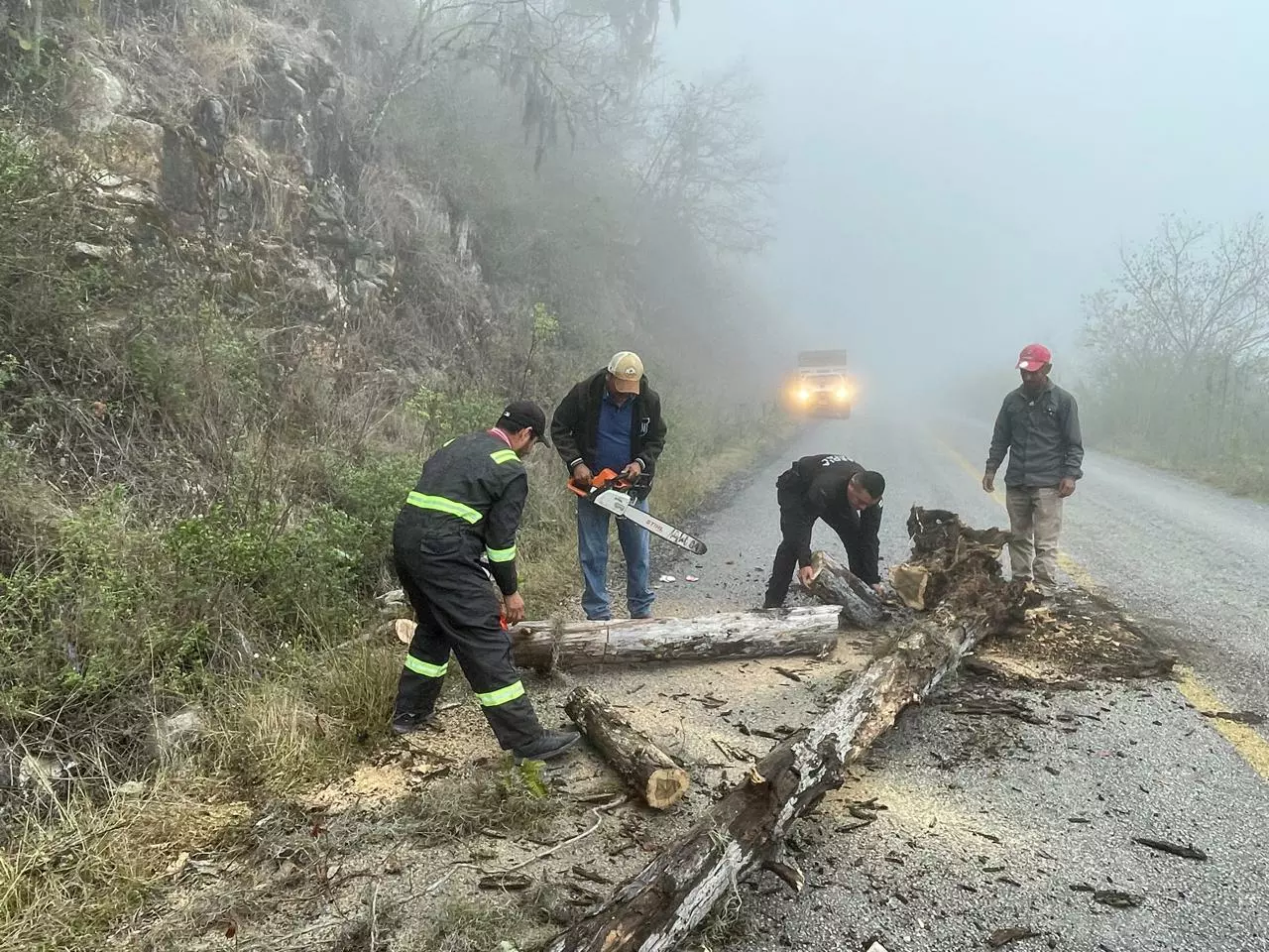 Tula, Tamaulipas.– Personal de la Guardia Estatal atendió un reporte ciudadano sobre un árbol caído que obstruía parcialmente la carretera estatal Tula-Ocampo, logrando liberar la vialidad y restablecer la circulación.