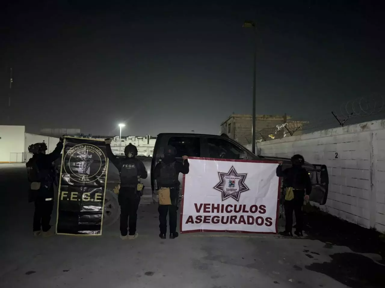 La unidad fue inspeccionada y verificada, tras lo cual se identificó un reporte de robo en el extranjero y blindaje artesanal en el medallón trasero, por lo anterior, fue puesta a disposición de la Fiscalía General de la República (FGR)