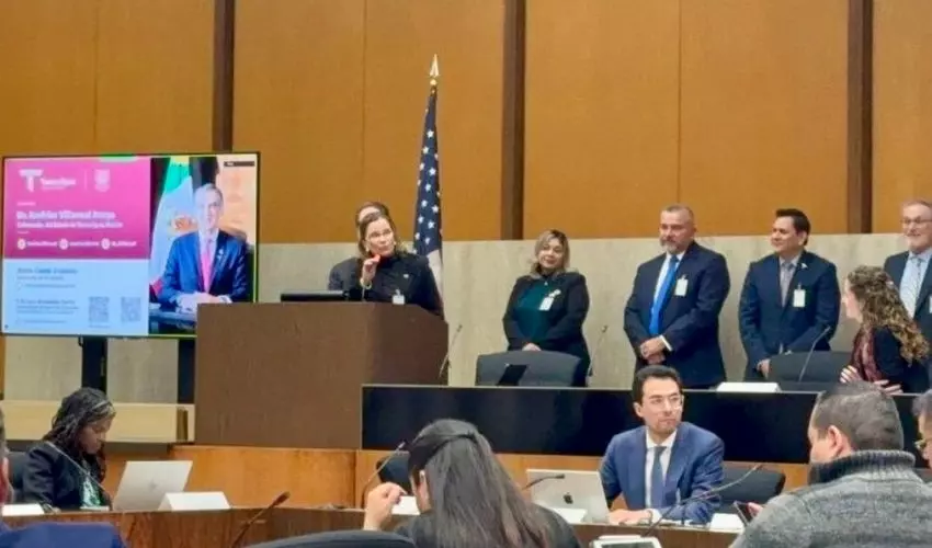 Durante su intervención, Ninfa Cantú Deándar reiteró el compromiso del gobernador Américo Villarreal con el fortalecimiento de la infraestructura estratégica binacional, el desarrollo económico regional y una visión de prosperidad compartida para América del Norte.