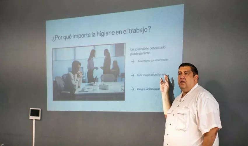 Refirió que durante la capacitación se abordaron temas fundamentales relacionados con la higiene personal como un factor clave para prevenir enfermedades transmitidas por alimentos, cumplir con la normatividad sanitaria vigente y mitigar riesgos dentro de los procesos productivos.
