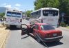 Estrella su auto atrás de un micro, sale herida su esposo...