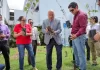 Rodeado de niños alegres, el gobernador Américo y el rector Dámaso...