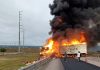 Choca tráiler, tortón y camioneta y se incendian, hay una persona...