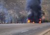 Vuelca y se incendia tráiler en la Rumbo Nuevo