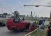 Conductor se ‘embarra’ con poste por esquivar una camioneta
