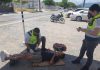 Familia derrapa con una mancha de aceite y cae de motocicleta