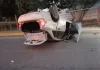 Mu3re pasajero en choque frontal entre tráiler y autobús