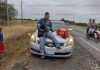 Pareja derrapa en su motocicleta en la carretera antigua a Tula