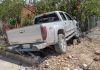 Se queda sin frenos y tumba malla ciclónica de una casa