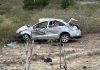 Estrellan auto con base de concreto y lo pulverizan, mueren dos...