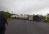 Vuelca pipa y cierra Carretera Reynosa-San Fernando