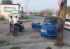 Parte su moto en dos, tras chocar con un auto